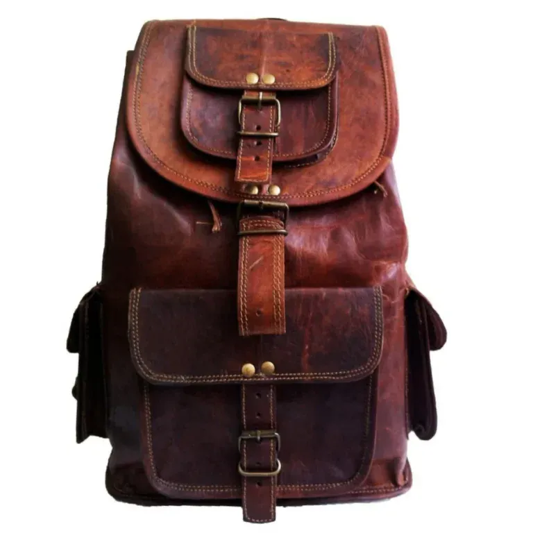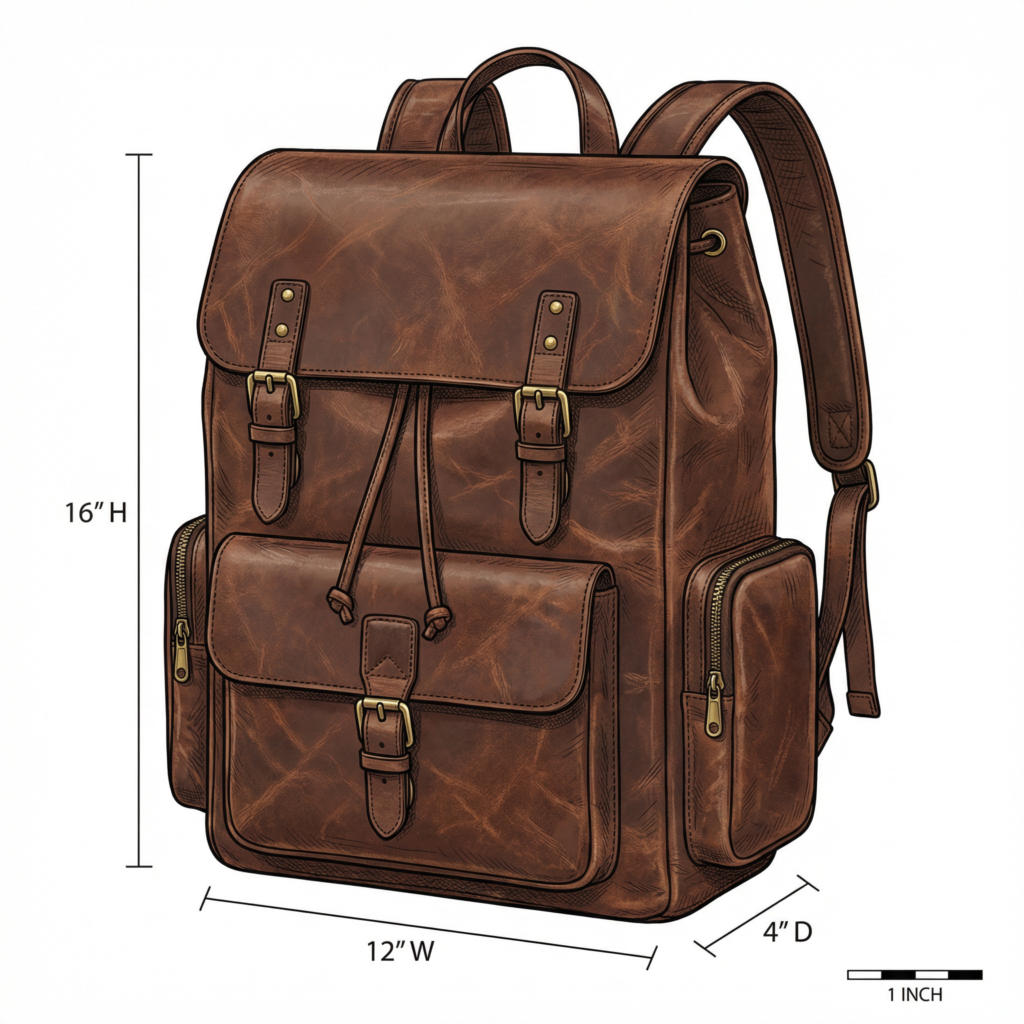 Tewtiw Unisex Burnt Brown Vegetable-Tanned Buffalo Leather 16-Inch Backpack