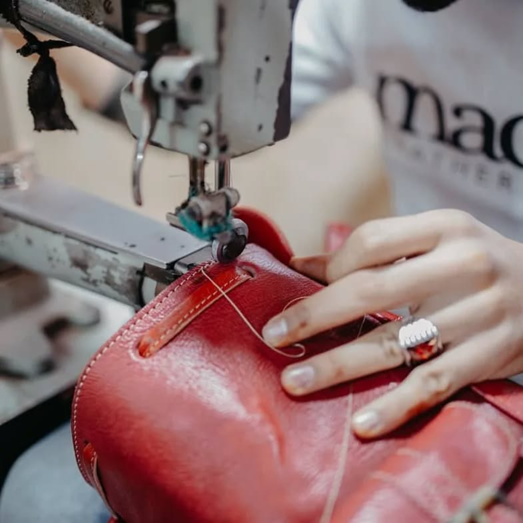 Once the leather is prepared, the artisans at Tewtiw begin the bag-making process: