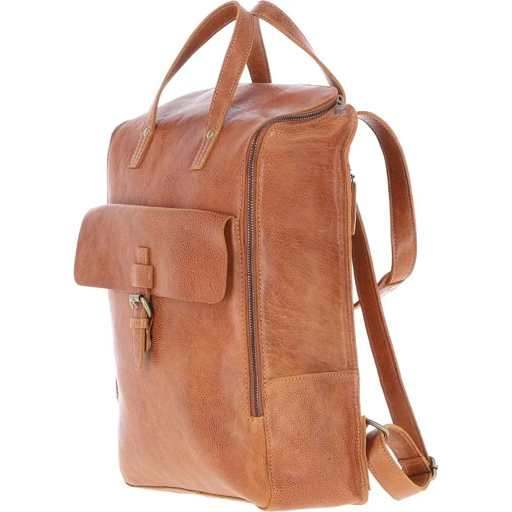 Tewtiw Unisex Tan Hand-Waxed Full-Grain Leather 16-Inch Laptop Backpack