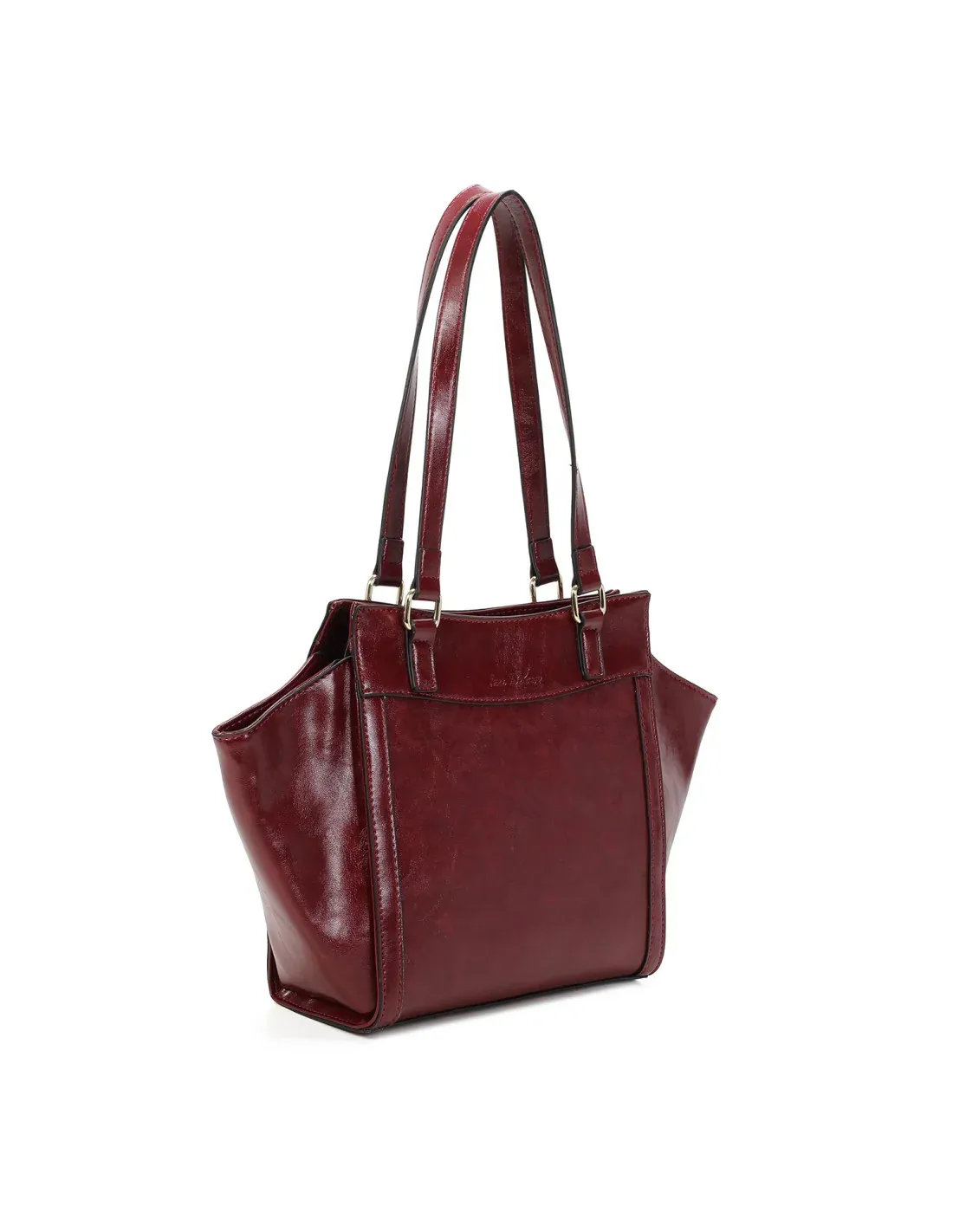Tewtiw Women’s Burgundy Polished Leather 16-Inch Winged Tote Bag