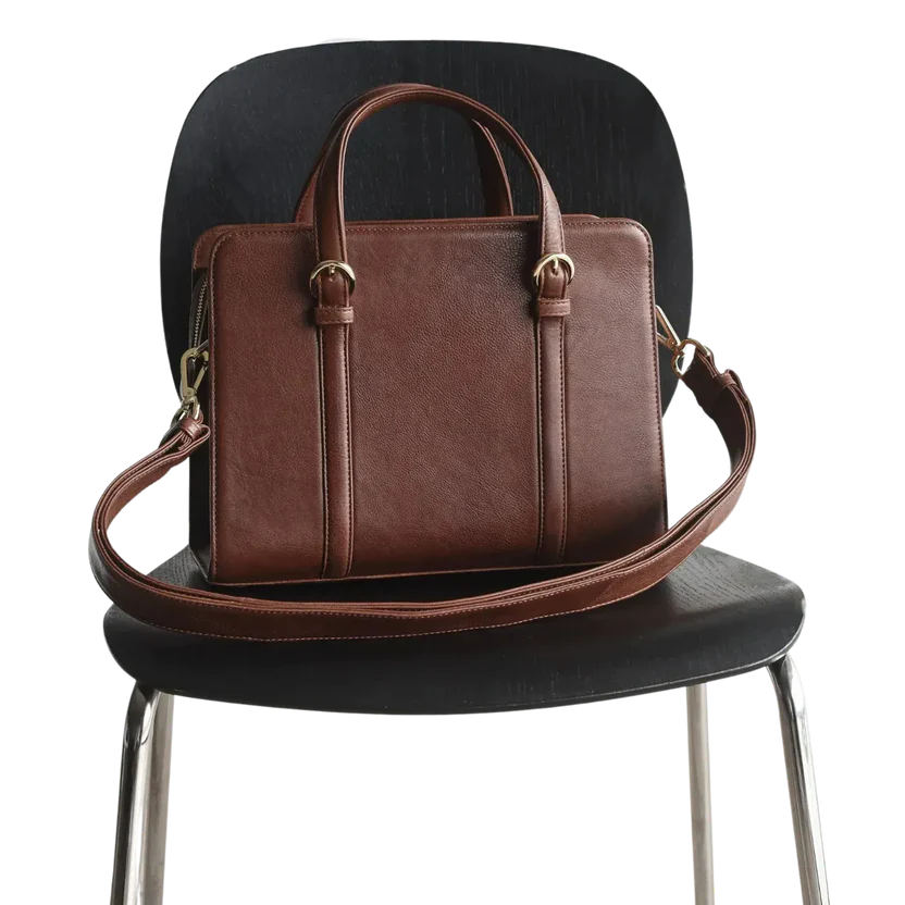 with a micro-pebbled texture. Designed for professional use and daily commuting, it holds documents, a tablet,